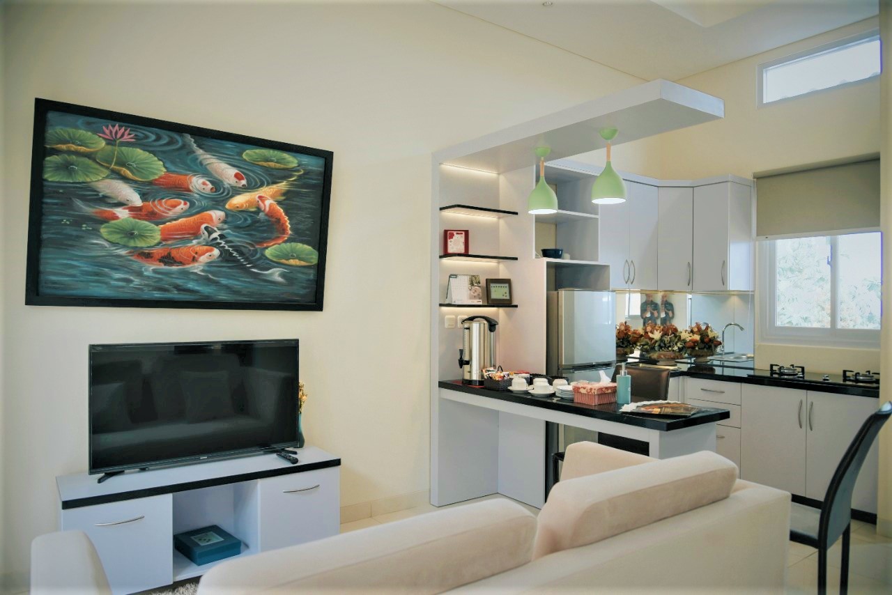 Luasan rumah yang terbatas tetap bisa dibuat cozy dan nyaman untuk setiap fungsi dengan memanfaatkan konsep “great room” yang menggabungkan ruang tamu, keluarga dan makan dalam satu area.